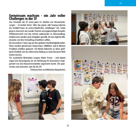 beschäftigte sich die Klasse 2F im Rahmen eines Projekttags in- Das Schuljahr der 2F stand ganz im Zeichen von Herausforde-