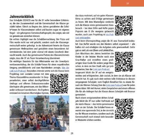 Das Schuljahr 2024/25 war für die 3F voller besonderer Erlebnis- klima zu achten und Erfolge gemeinsam