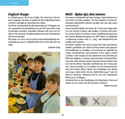 Im Frühjahr genoss die 2K das Projekt „The Great Day of the En- Die innerste Gefühlswelt auf Papier bringen. Seine Emotionen in Am 28. März beteiligte sich unsere Schule am Österreichischen